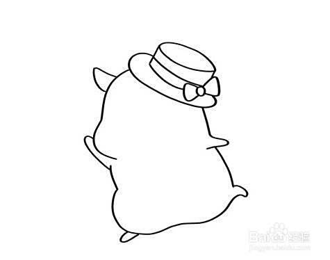 接下来画出仓鼠的身体,画出它短短的四肢,以及露在帽子外面的耳朵。