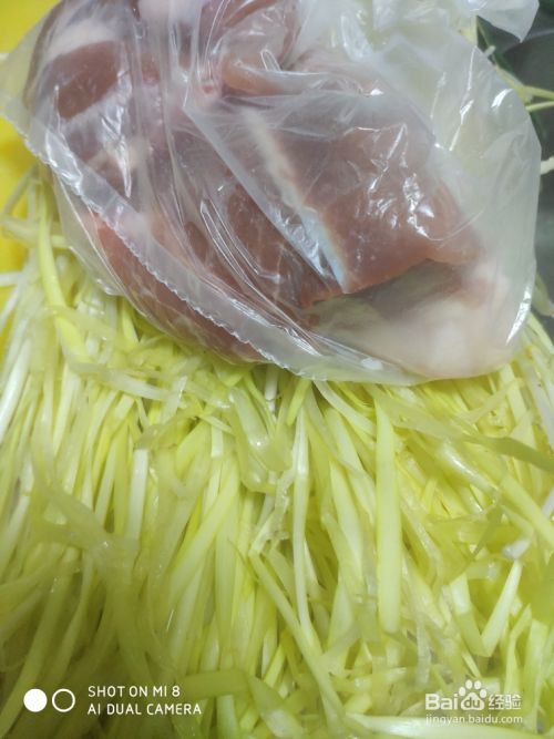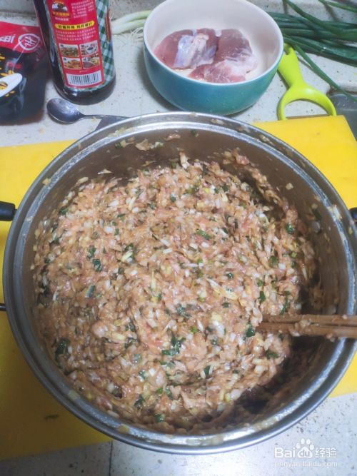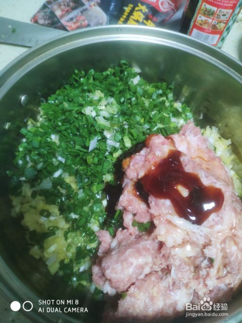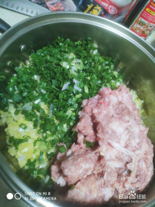 韭黄碎,猪肉生姜末,再切八根小葱碎放进去