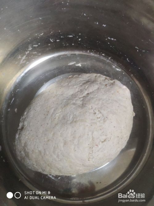 盆里放入约100克白面,400克杂粮面搅和搅和。