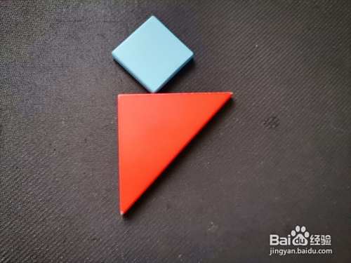 拿出一个粉色小三角形放在红色大三角形的下面,如下图所示。