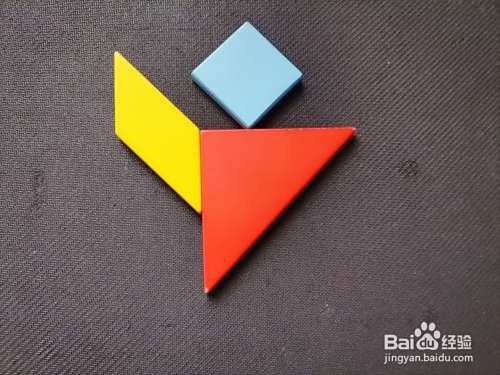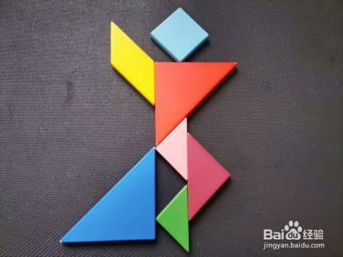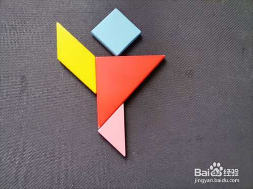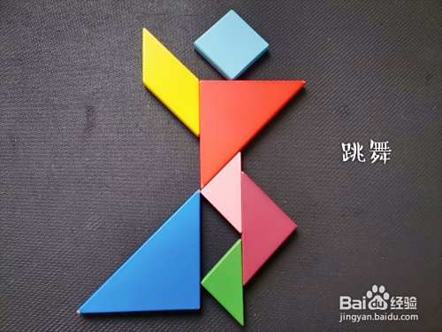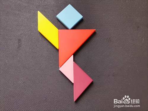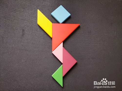 最后我们把深蓝色大三角形摆放好,一个跳舞的人就拼好了。