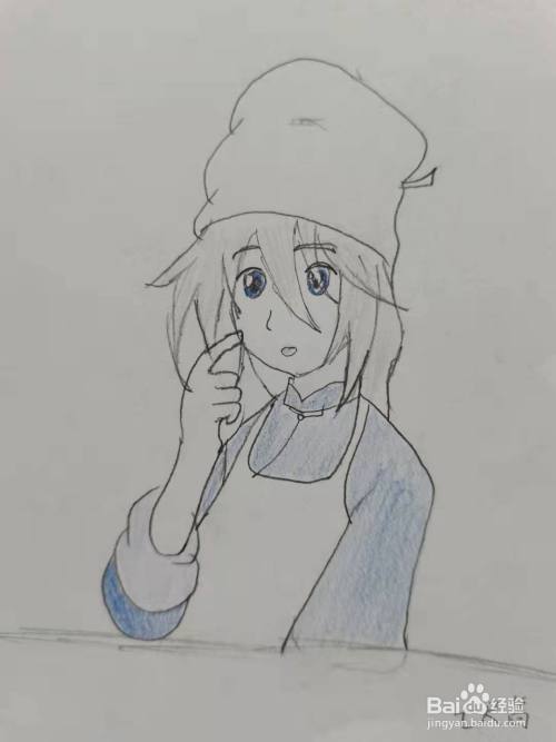 最后,简单涂上颜色,卡通小厨师,就完成了。