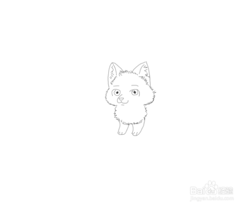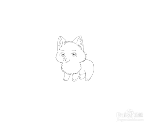 再在前腿和头部的基础上再画出小狐狸的身体和两条后腿,如图所示: