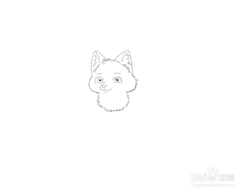 再在小狐狸的两只耳朵的基础上再画出小狐狸的头部轮廓,如图所示: