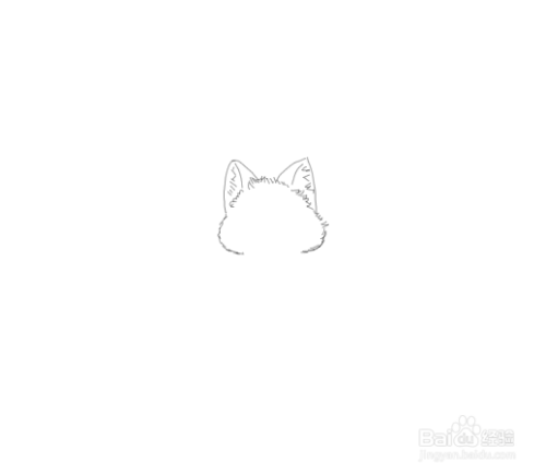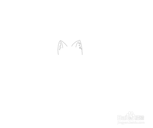 先画出小狐狸的两只耳朵,然后再在耳朵上面画出小狐狸的耳朵内部结构,如图所示: