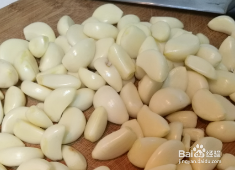 然后,把去皮后的大蒜捣成蒜泥以作备用。