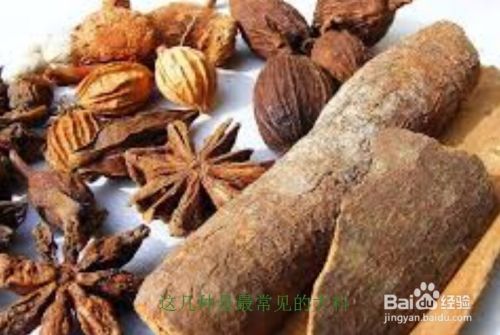 选材(大料选材):选材在卤肉中是一件大事,我们要根据自己喜欢的口味来进行适当的选材,一般我们到超市卖料的地方都可以找到到常见的桂皮、甘草、砂仁、草果、丁香、八角、生姜等等常见的中药材料。
