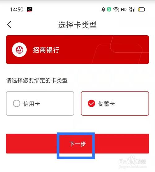 点击发卡行,选择卡类型,点击下一步。