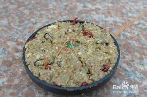 饵饼,配合翻板钩,记得鱼钩要朝下才行,上面不要忘了铅坠,即使是通心铅坠也是可以的。