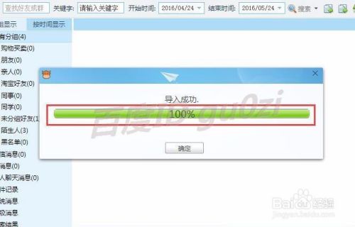 当进度走到100%,并提示导入成功时,说明消息记录导入完成了.23:41 2016/5/26