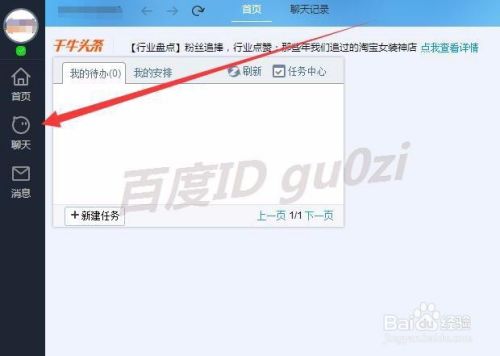 在登录后的千牛工作平台上,点击左侧的 聊天按钮