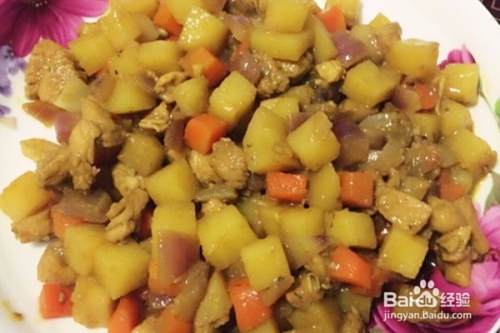 热锅下油,先放入鸡丁进行翻炒,炒至变色发白盛出,再把土豆、胡萝卜倒入进行翻炒两分钟,然后倒入鸡丁共同翻炒几下,加入适量开水放入咖喱块小火开始熬制;等到汤汁浓稠,再根据各人口味看需不需要加盐就可以出锅了;