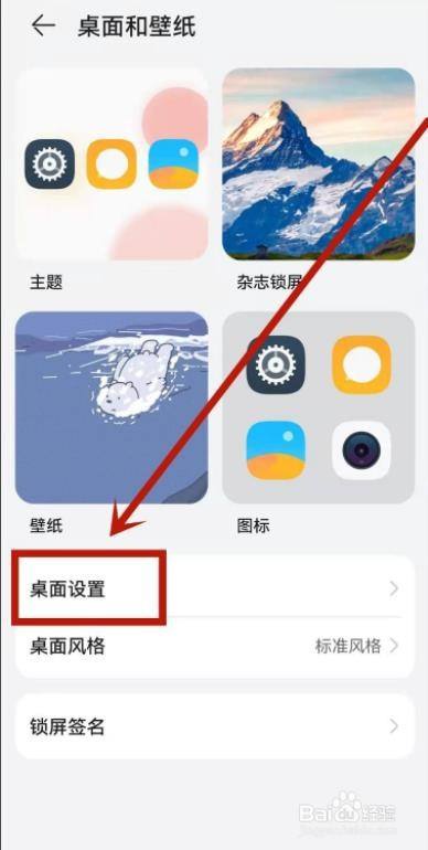 在桌面和壁纸界面,找到桌面设置选项并点击一下;
