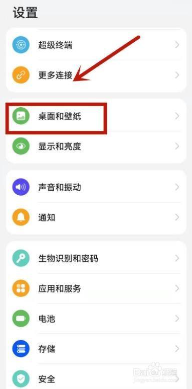 进入手机设置界面,选择一下桌面和壁纸选项;