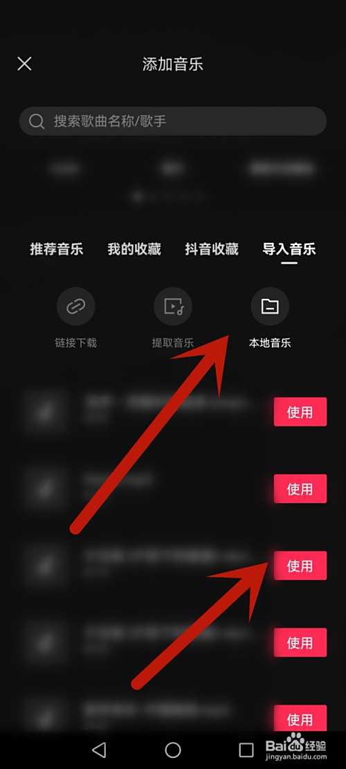 选择本地音乐,再选择音乐,点击【使用】即可。