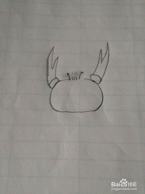 两边各画一个小圆圈,作为它的大钳子连接点。(如图)