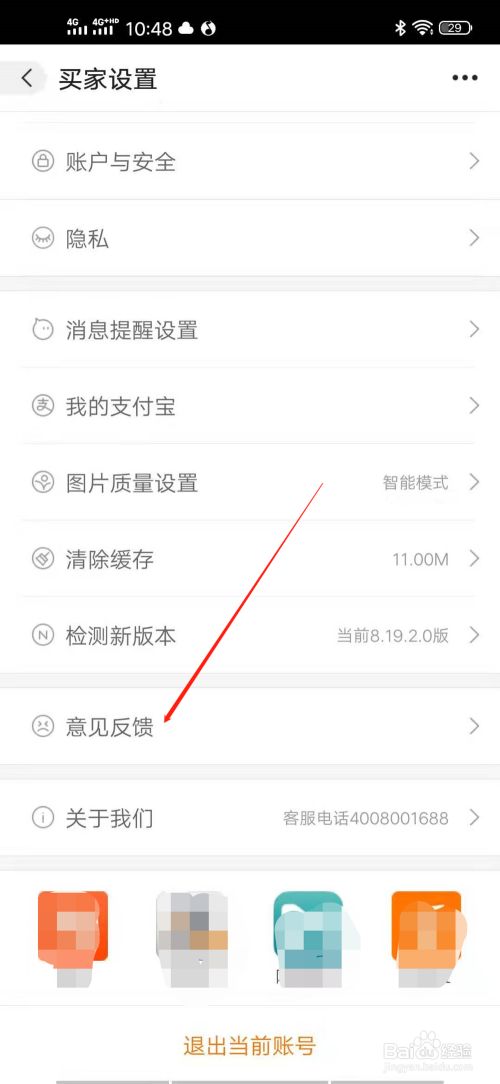 滑动设置的页面,即可看到意见反馈的选项,点击进入可以反馈使用阿里巴巴的相关问题。