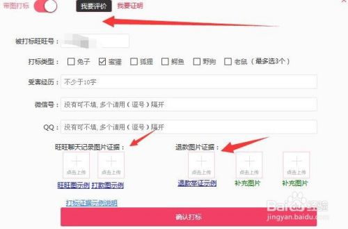 第5步:点开旺旺打标 根据要求填写 证据缺一不可(如图所示)
