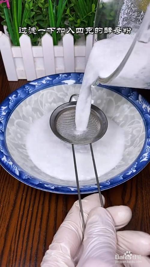首先,准备大米提前泡发两小时,加入适量的水,放入破壁机中打成米浆,将打好的米浆放入碗中,过滤一下