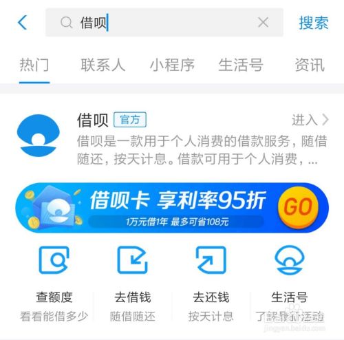 第二步:选择后,输入借呗,选择搜索框下面出现的借呗卡