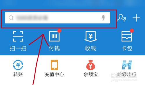 第一步:打开手机上的支付宝,然后选择顶部的搜索框