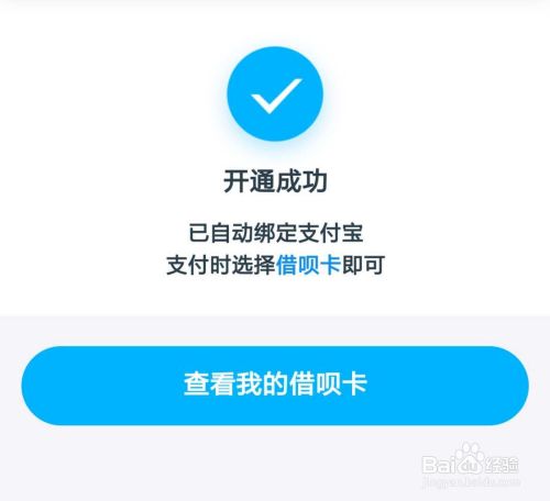 第四步:点击后,弹出开通成功的提示框,然后点击查看我的借呗卡