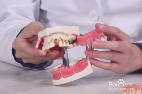 我现在会送给大家一个模型看一下你可以看一下,这边是正常情况下,那牙龈下面啊,牙槽骨包着所有的牙根那这边老是没有牙周病,那你看就是牙龈和牙齿中间存了牙结石,这些脏东西如果存在里面久了而没有及时的清理出来的话,它就会导致牙龈的感染出血,然后下面骨头也会萎缩,这样的牙齿就会松动了。