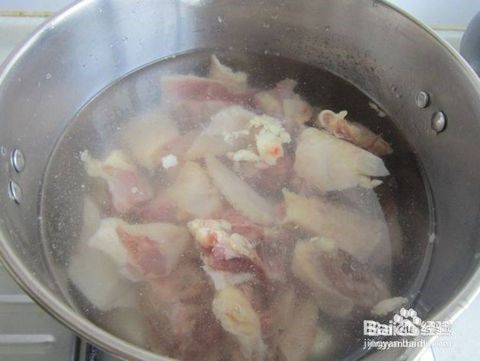凉水下锅料酒3克煮开捞起,洗净血沫