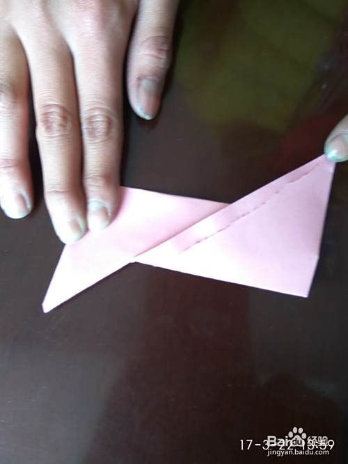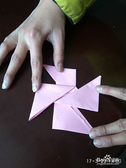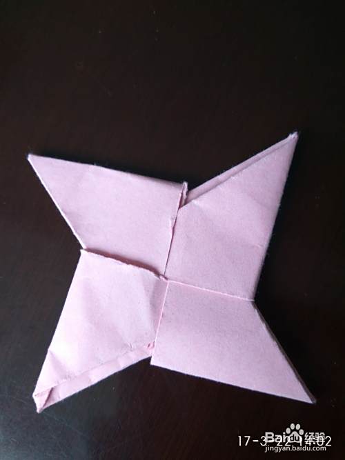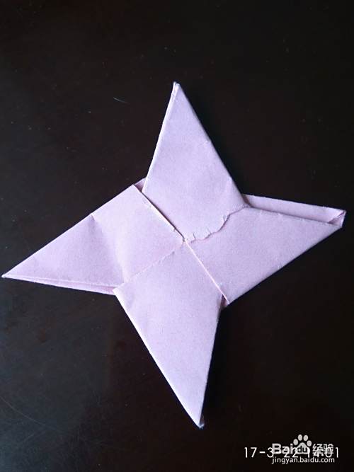 5、这个过程需要一边折一遍套,会有改动的存在,所以不能心急。下图就是折好的飞镖样子,怎么演很帅吧!