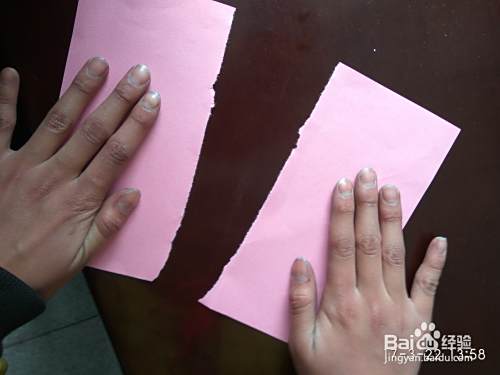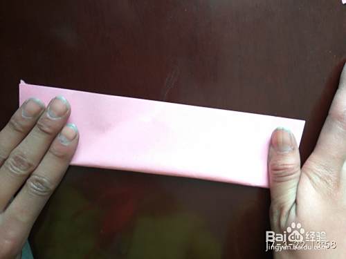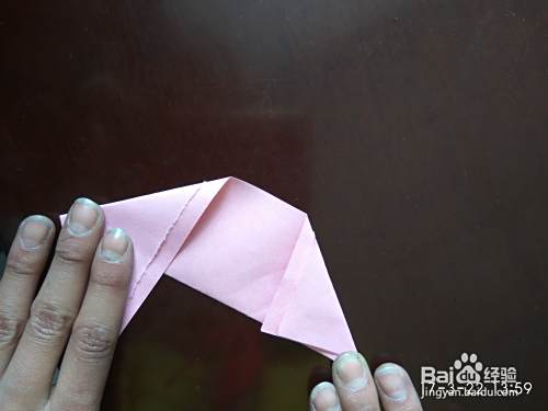 4、继续折叠,使折出的两头的小三角形分别朝着两侧,然后去除另外半张纸,再折一个,并将两个图形对折、拼接、套装。