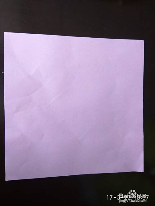 3、取出其中一张,按照下图所示的样子,这一个小三角形。然后从另一方继续折出小三角形,中间留出一个小正方形,方便拼接。