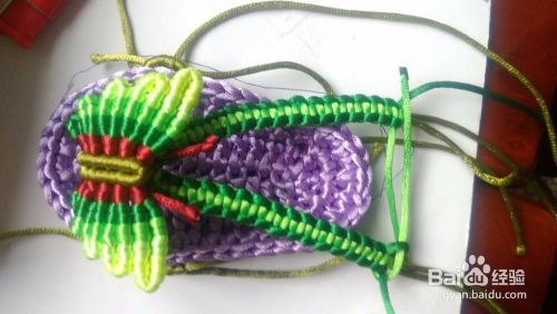 不会编这个多彩蝴蝶的请参照一下我前面的《中国结线编多彩蝴蝶拖鞋》上面有详细的步骤图。这里我就不再重复的上图解了。