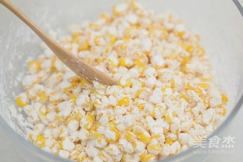3加入玉米淀粉,一定每粒都裹上,这样烙不散的