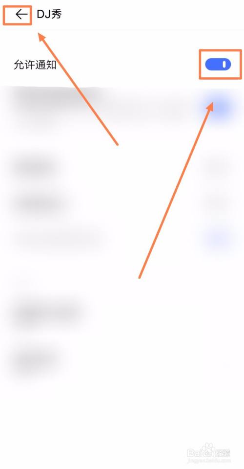 6.当“允许通知”的按钮颜色为蓝色的时候,点击左上角的“箭头图标”。