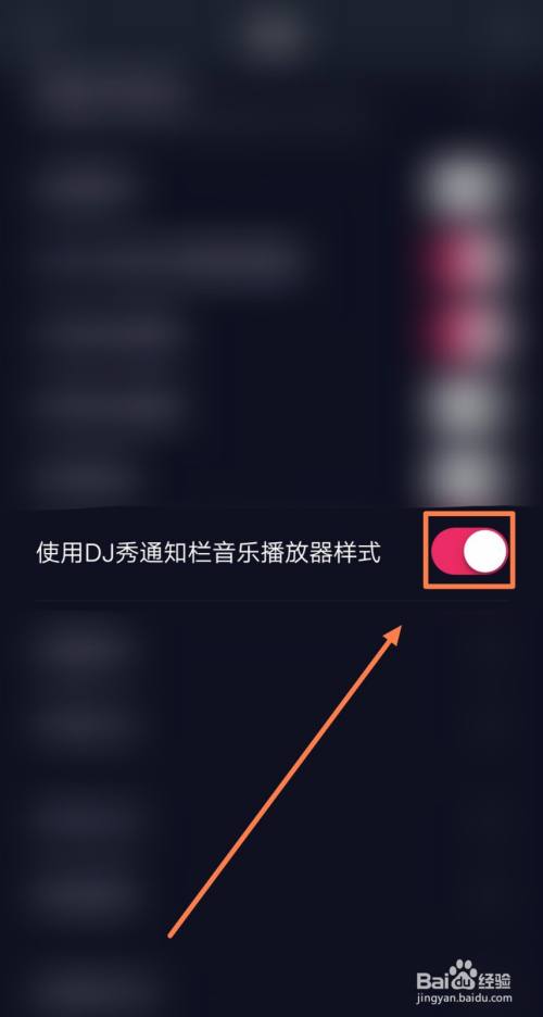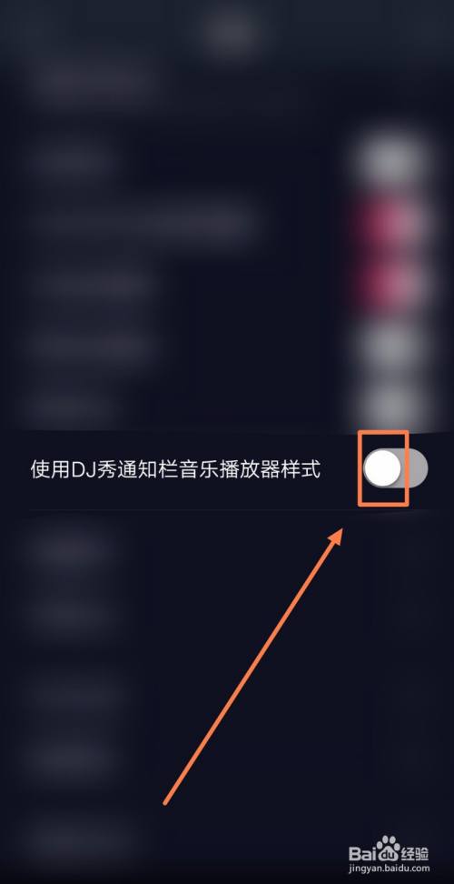 4.右置“使用DJ秀通知栏音乐播放器样式”的按钮圆点。