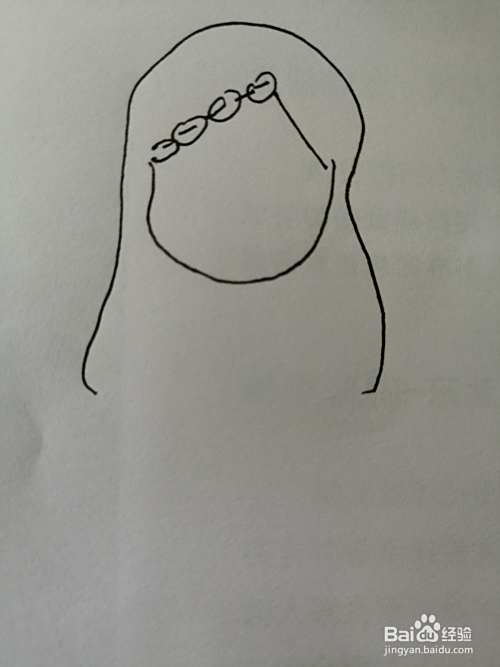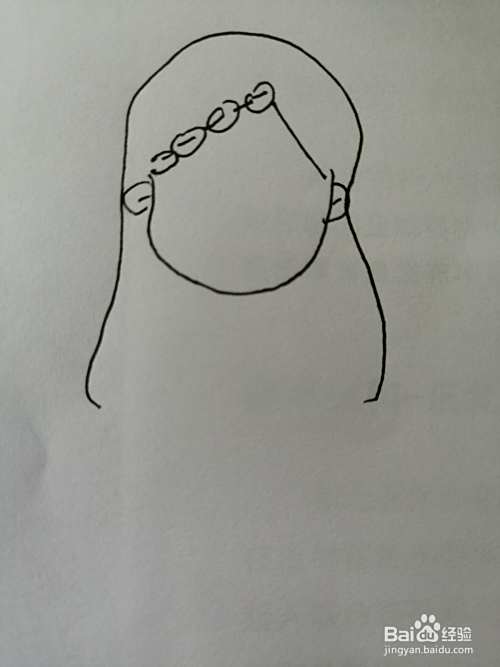 第二步,接着继续画出可爱的小女孩的长长的头发,注意头发里面两只耳朵的画法。