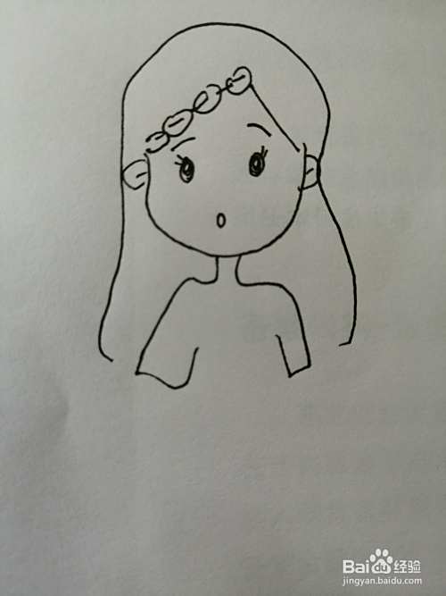 第三步,接着继续画出可爱的小女孩的两条眉毛,注意眉毛的位置。