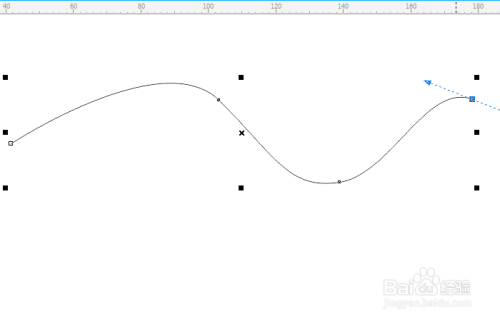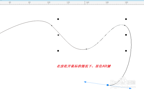 鼠标点击一点,然后点击另一点时拖拽不放,就可以画出曲线,并出来调节的手柄,如图所示;
