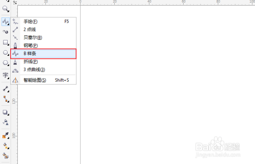 下面我们说一下"b样条"工具,在工具栏选择"b样条"工具,如图所示;