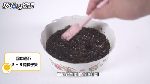 3采点播法于盆中洒下2~3粒种子,以食指挖出播种用洞穴,将种子放入其中,轻轻地敷上土壤。