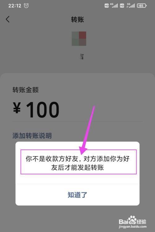 如果弹出“你不是收款方好友”提示,则该微信好友已将你删除