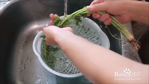 将香菜放在水下冲洗干净