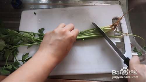 把香菜去头并切成段