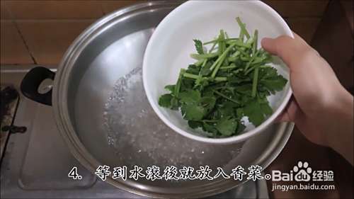 水开了之后就可以放入切好的香菜
