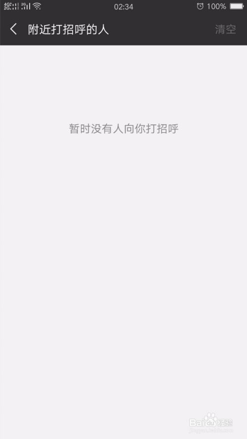 进入“附近打招呼的人”页面就可以查看到所有打过招呼的人了,因为这里已经清理过了,所以显示的是没有打过招呼的人,请忽略。