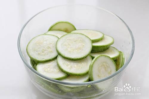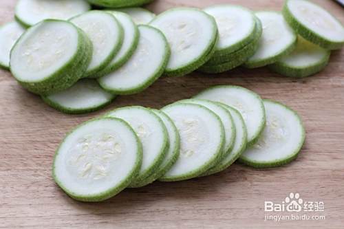 西葫芦洗净擦干表面水分,切成厚片。