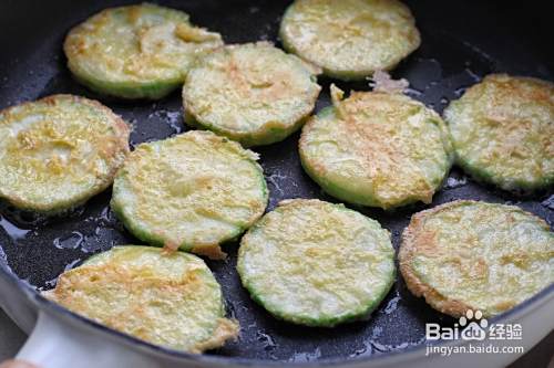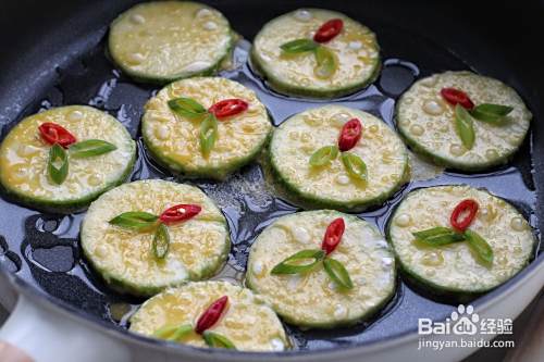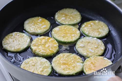 锅中倒入食用油,将西葫芦片依次放进锅中小火煎制。