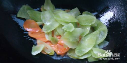 将莴笋、胡萝卜去皮,洗净切薄片。