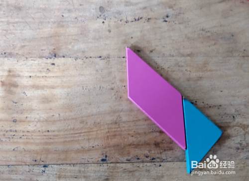 摆上蓝色三角形,左上摆上平行四边形挨着,如图。