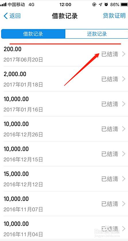 打开借款记录后,你可以看到你之前的所有借款记录明细和已结清明细等,如下图所示: